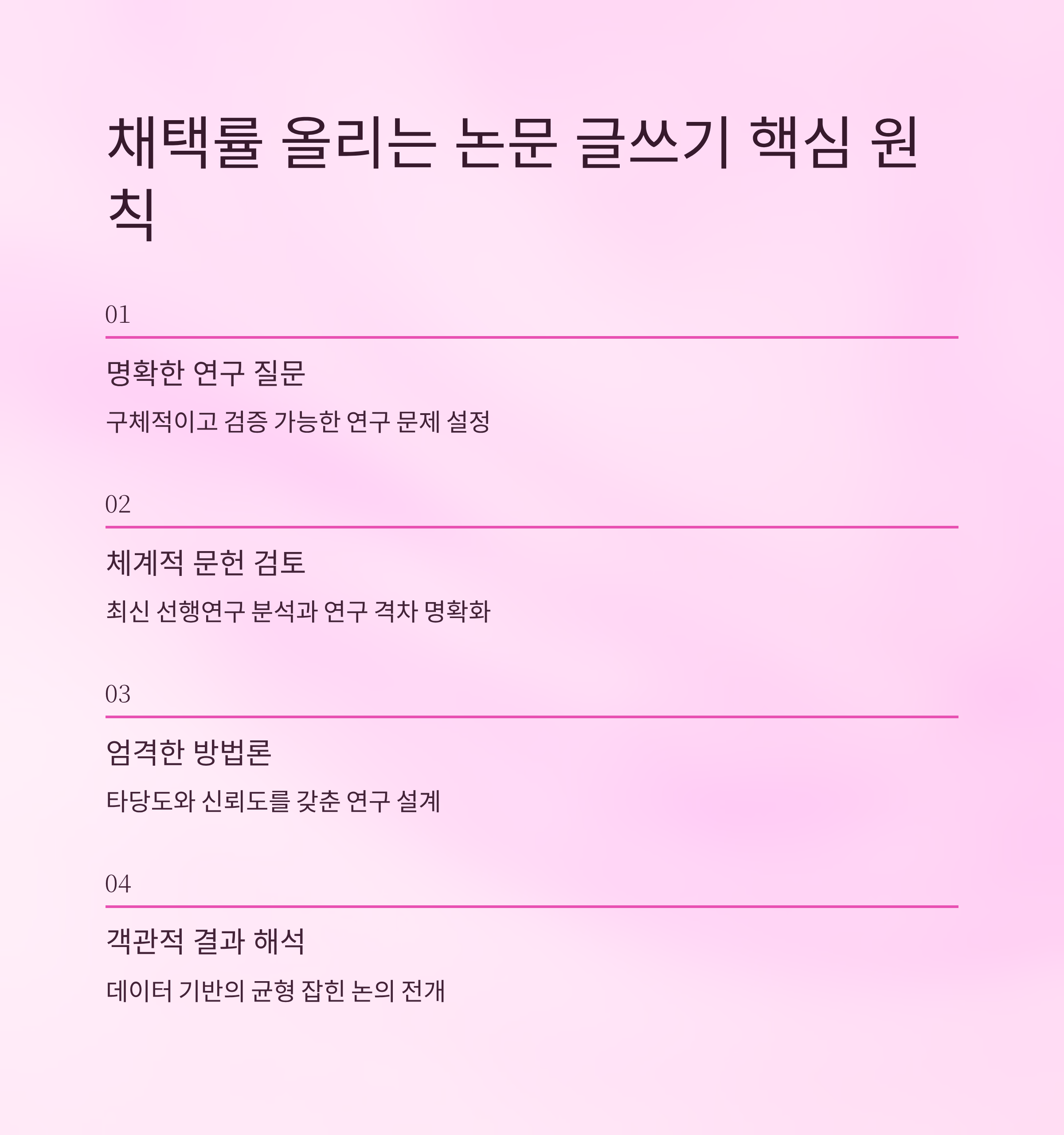 ๋ ผ๋ฌธ์์ ๊ฐ์ฅ ์ค์ํ ์ฒซ ๊ด๋ฌธ์ด ํ์์ด๋ผ๋ ์ฌ์ค, ๋ง์ ๋ถ๋ค์ด ๊ฐ๊ณผํ๊ณ ์์ด์. ๊ธ์ ์ ์ฐ๋ ๊ฒ๋ ์ค์ํ์ง๋ง, 'ํ์ ๋ง๊ฒ ์ ์จ์ผ' ํ๋ ๊ฑฐ์์. ๋ค์ ๋ฌธ๋จ์์ ์ด๋ค ์ค์๊ฐ ๋ฐ๋ณต๋๋์ง ์ข ๋ ์์ธํ ๋ณผ๊ฒ์.