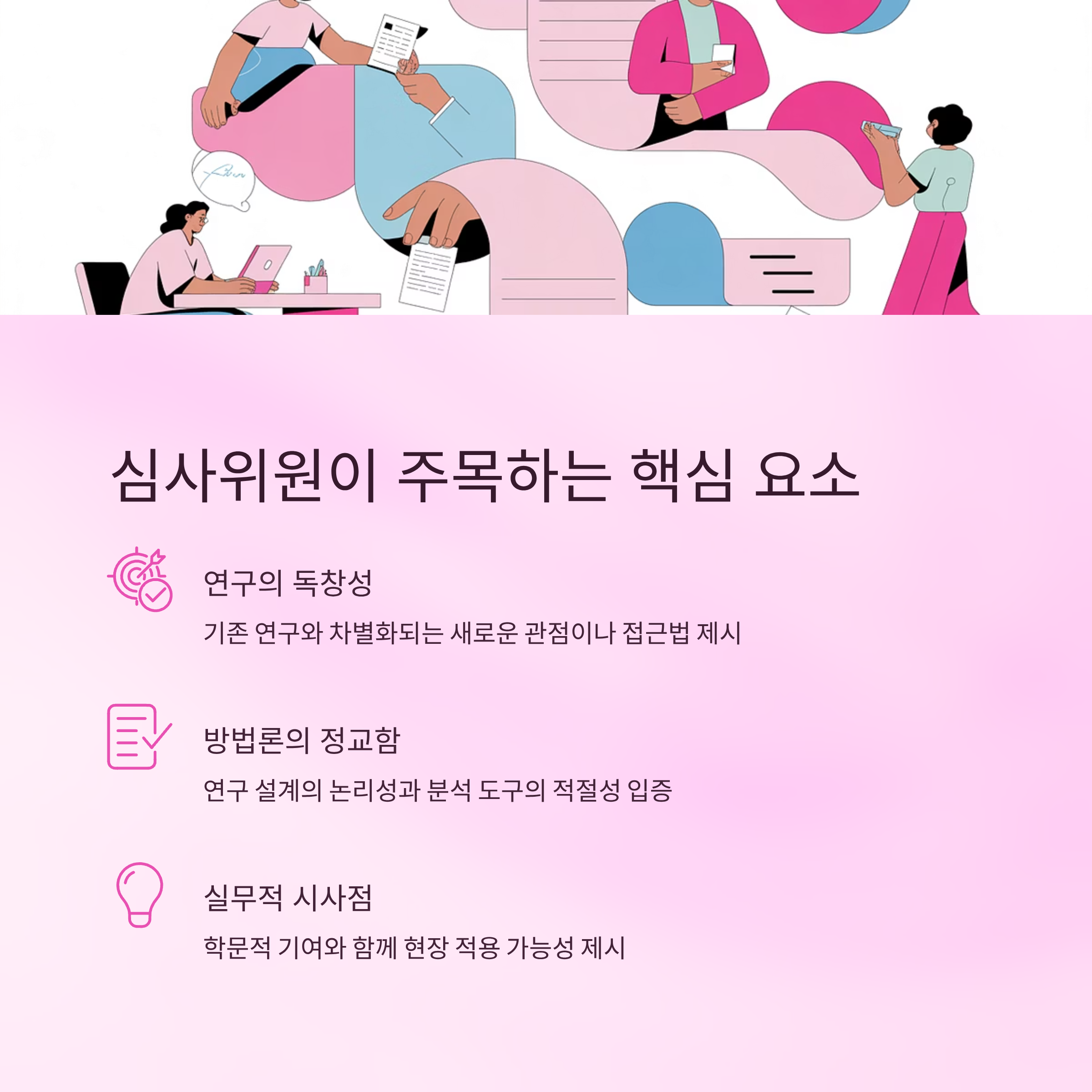 ๋ ผ๋ฌธ ์ฌ์ฌ์์๋ค์ ๋จ์ํ '์ฐ๊ตฌ๋ฅผ ํ๋๊ฐ'๋ณด๋ค '์ฐ๊ตฌ์ ํ์์ฑ๊ณผ ๊ธฐ์ฌ๋๊ฐ ์ถฉ๋ถํ๊ฐ'๋ฅผ ์ค์ํ๊ฒ ์ฌ๊ฒจ์. ๊ทธ๋์ ๋ฐฐ๊ฒฝ ์ค๋ช ์ด ๋ถ์กฑํ๊ฑฐ๋ ์ ํ์ฐ๊ตฌ์์ ์ฐจ๋ณ์ฑ์ด ๋ช ํํ์ง ์์ผ๋ฉด ๊ฐ์ ์์ธ์ด ๋๊ธฐ๋ ํด์.